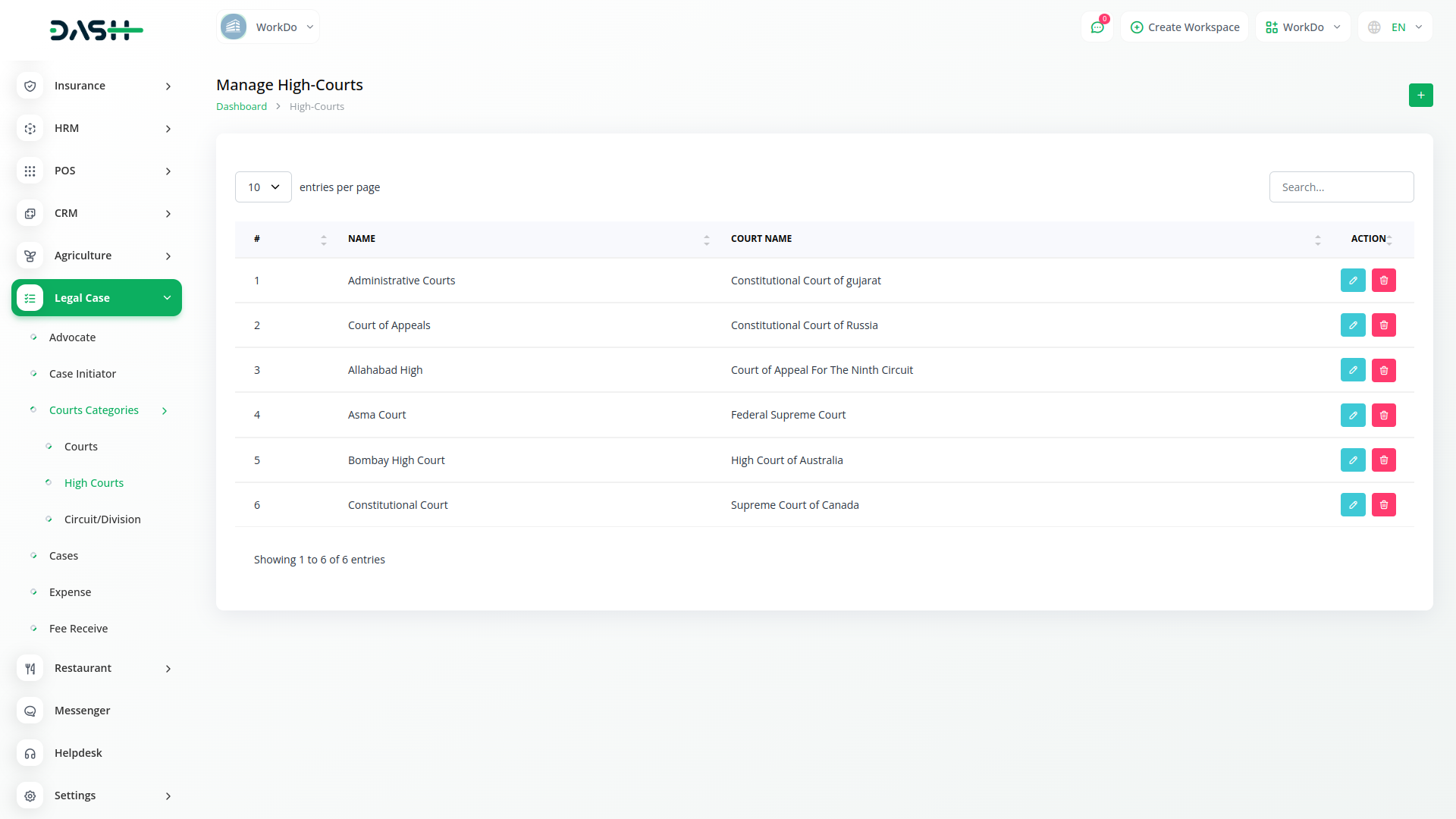 The Legal Case Management module in Dash SaaS is a dedicated tool for simplifying legal processes. With a user-friendly interface, it allows users to efficiently manage information related to advocates, case initiators, and court categories. This module serves as a central hub, facilitating the organization and accessibility of critical legal data within the broader Dash SaaS platform.