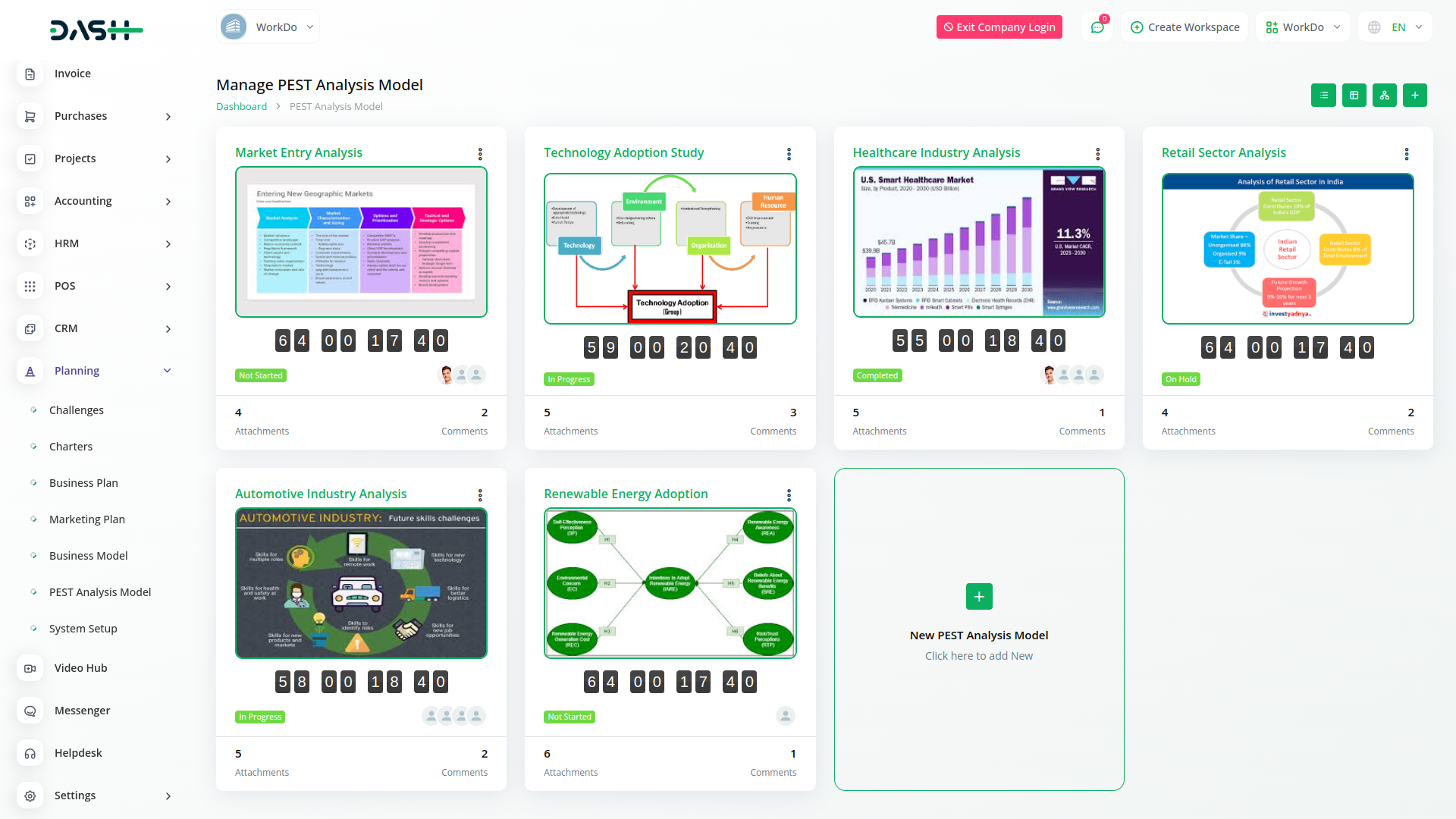 The PEST Analysis Module by Dash SaaS equips businesses with a robust framework to evaluate external factors influencing strategic decisions. This tool is indispensable for navigating the complexities of todays business environment, offering insights into Political, Economic, Social, and Technological factors that shape industry landscapes.