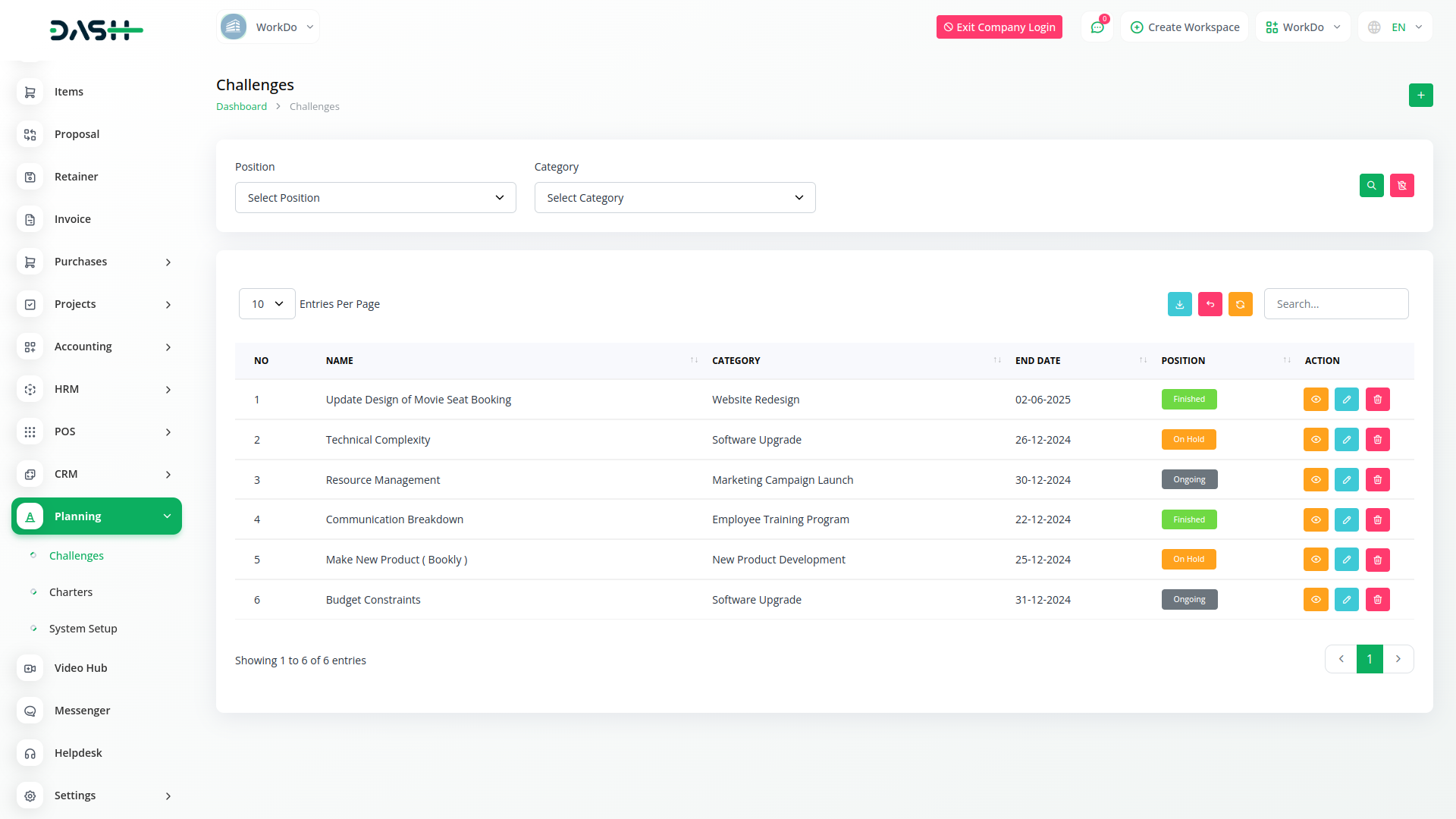 The Planning Module of Dash SaaS offers a centralized hub for efficiently managing challenges and charters. Gone are the days of juggling multiple documents and struggling to keep track of progress. With the Planning Module, you can easily create, update, and monitor your challenges and charters in one intuitive platform. From defining objectives to tracking milestones, our module empowers you to stay organized and focused on achieving your goals.
