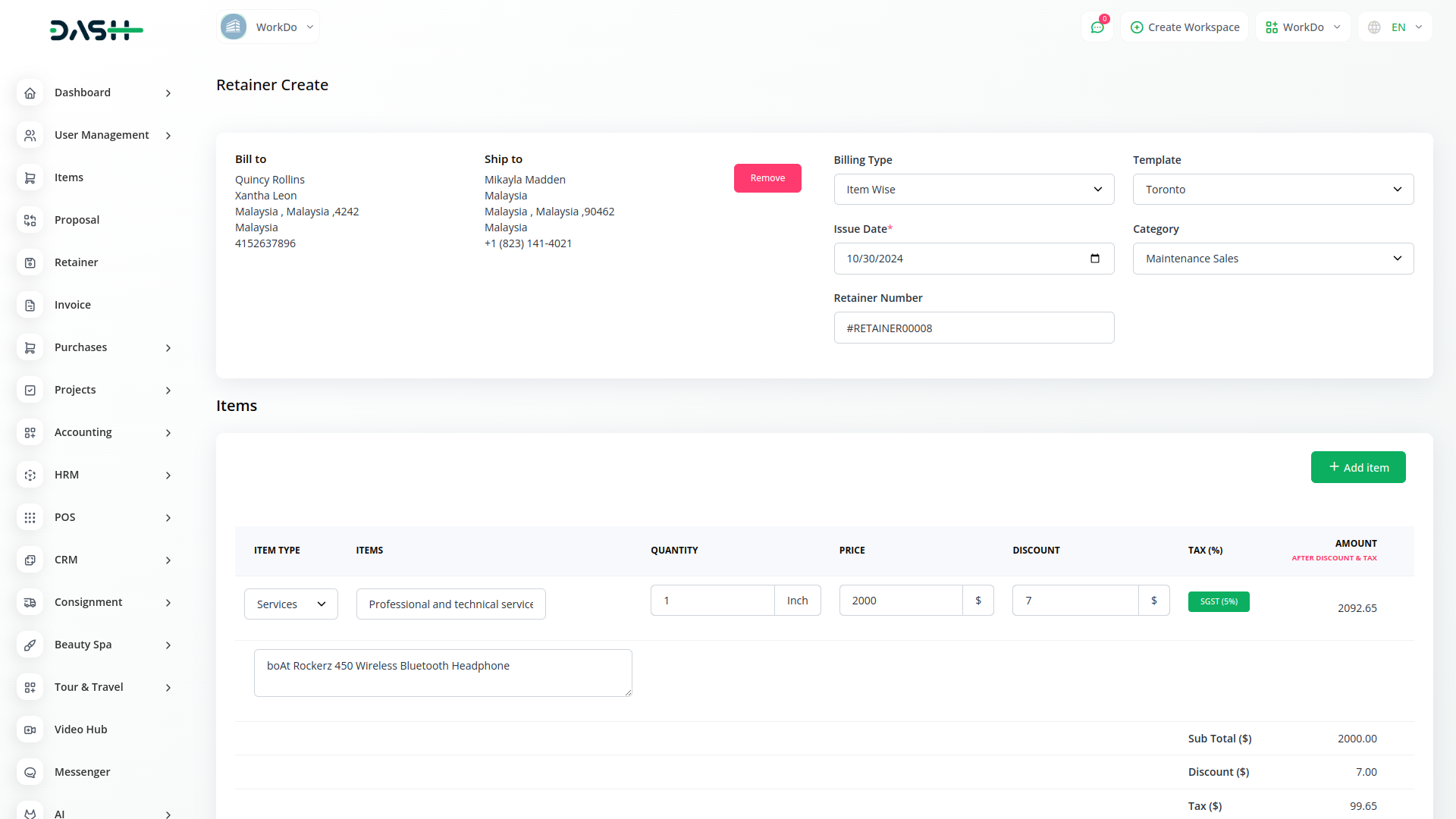 Retainer invoices are documents the firm can provide to the client to ask for funds prior to the project starting. Its a method of securing services for use when required. In other words, its a form of deposit or pre-payment.